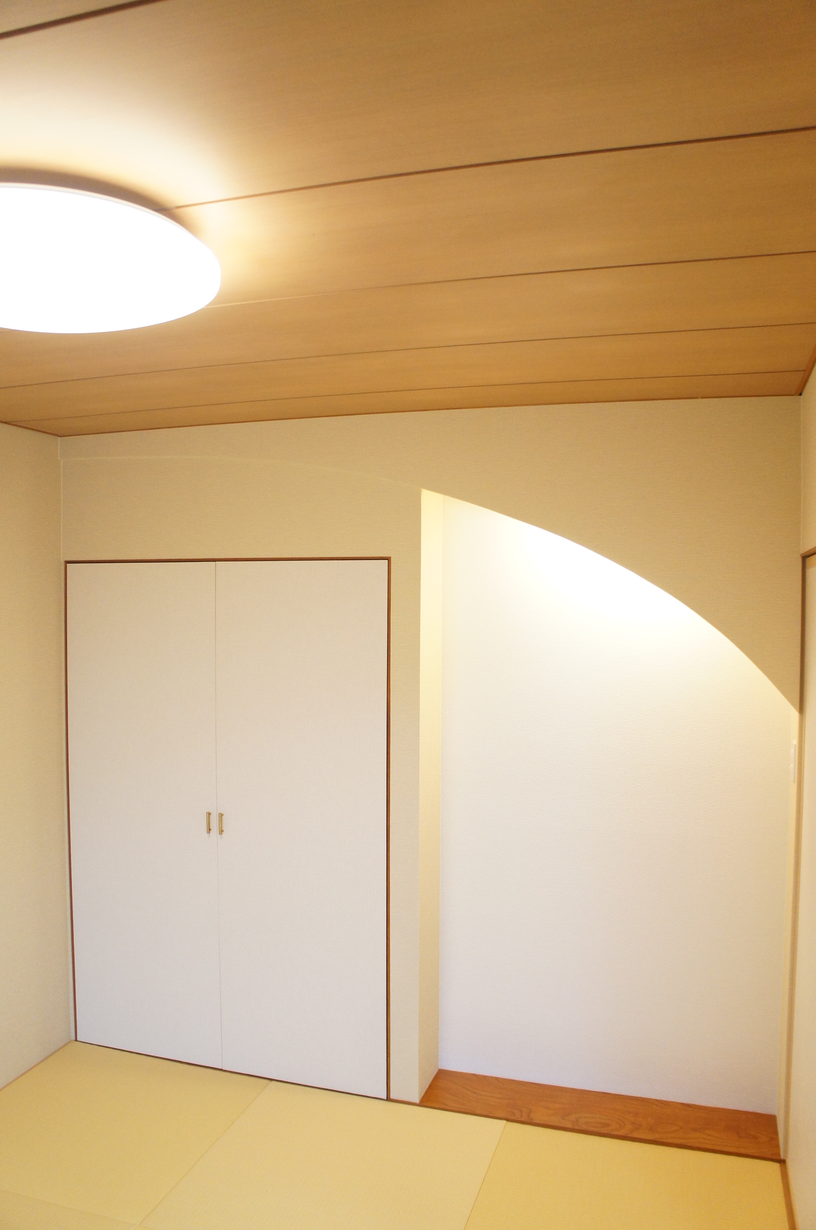畳も通常畳ではなく、ヘリのない正方形の琉球畳で仕上げ。