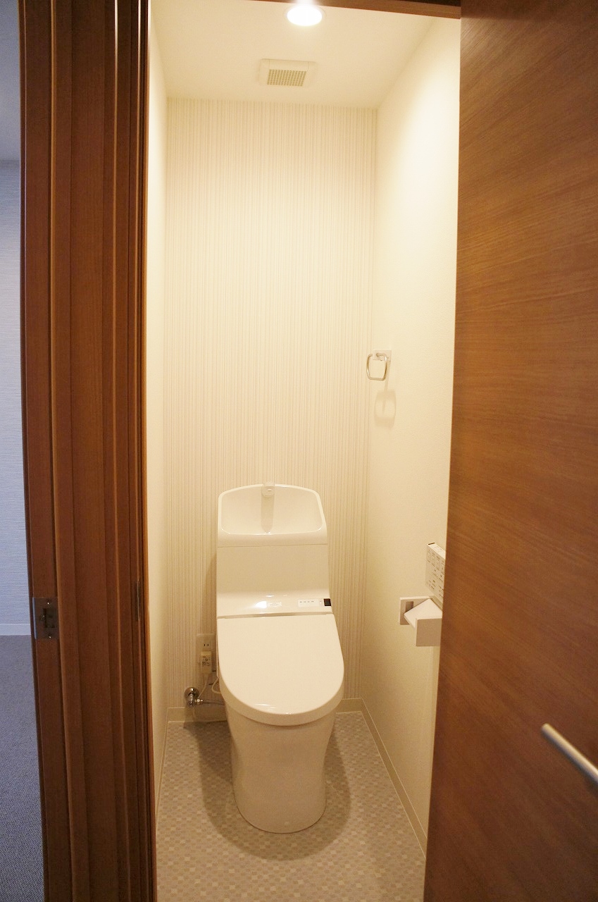 玄関前の物入れを変更してトイレへ。便器・便座一体型のトイレへ変更。