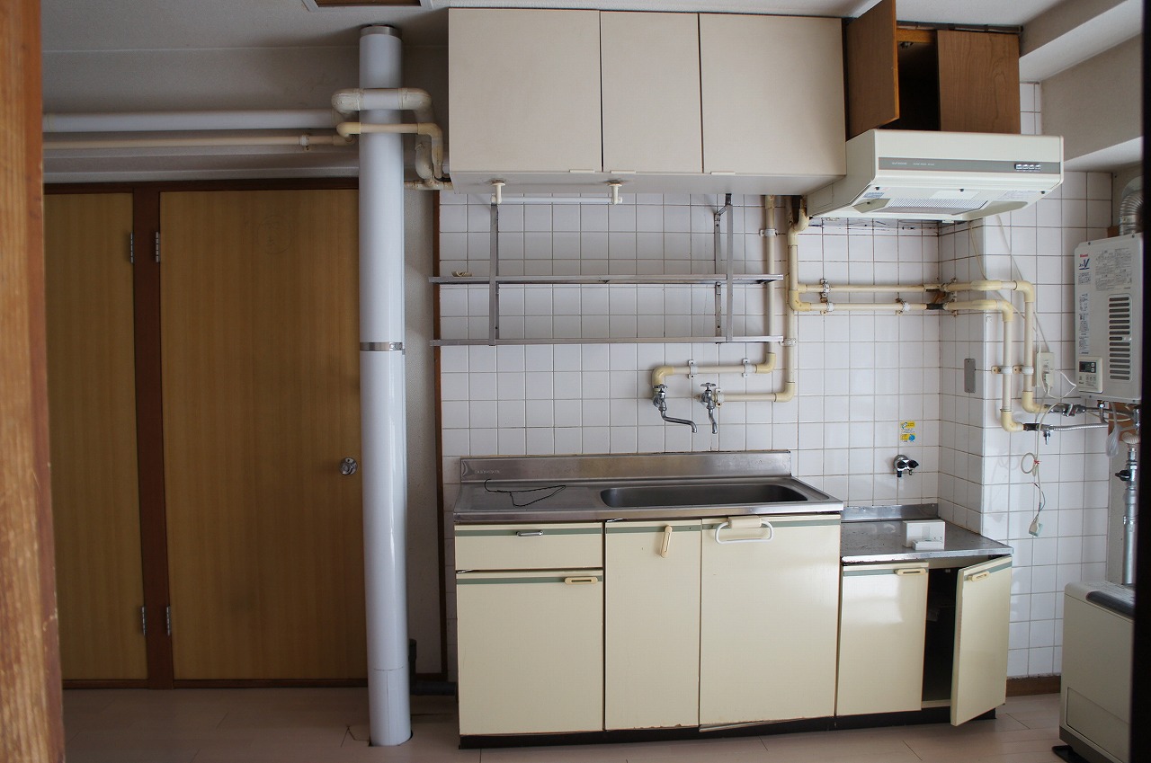 配管は見え、冷蔵庫置き場もなかったキッチン。全て解消しました。